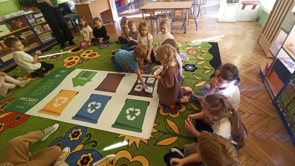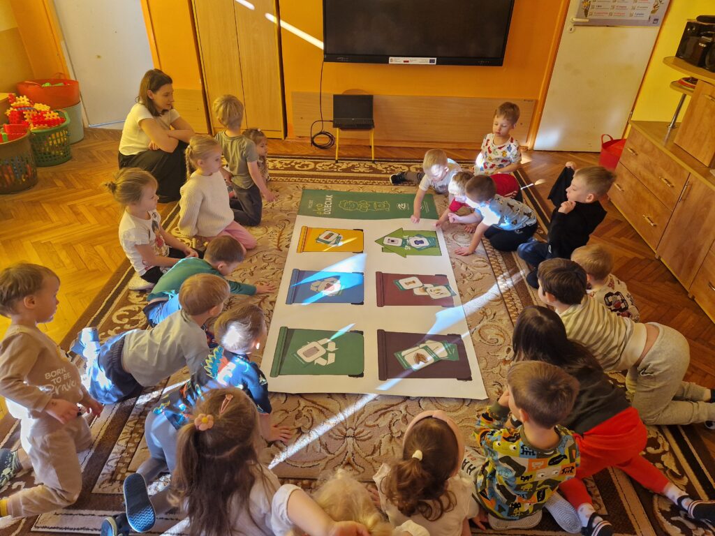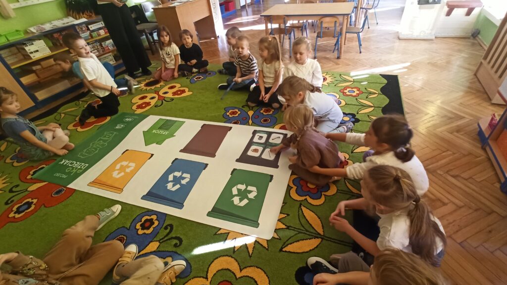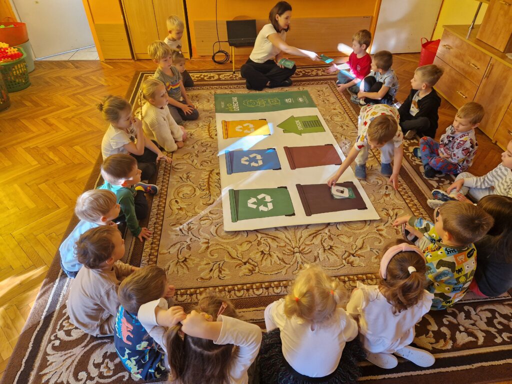 W piątek, 7 listopada 2025r. dla dzieci z grup: „Muchomorki” i „Wiewiórki” odbyły się eko – warsztaty na temat segregacji śmieci, zorganizowane przez Częstochowskie Przedsiębiorstwo Komunalne w Sobuczynie. Podczas zajęć dzieci dowiedziały się, jak dbać o środowisko i dlaczego warto segregować odpady.