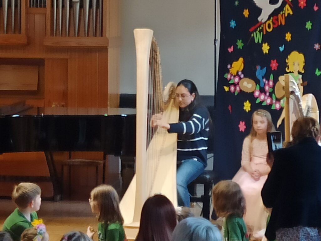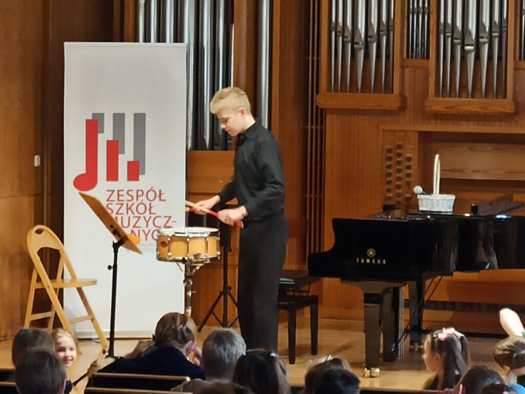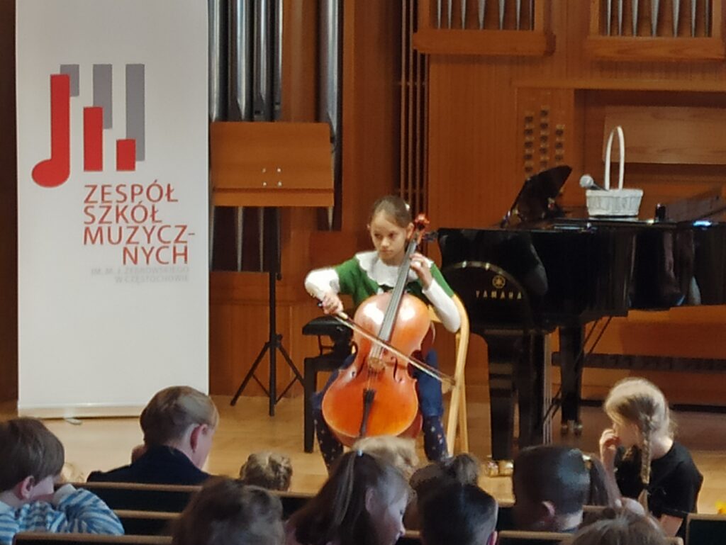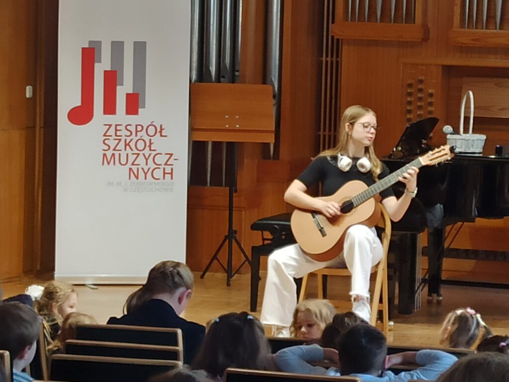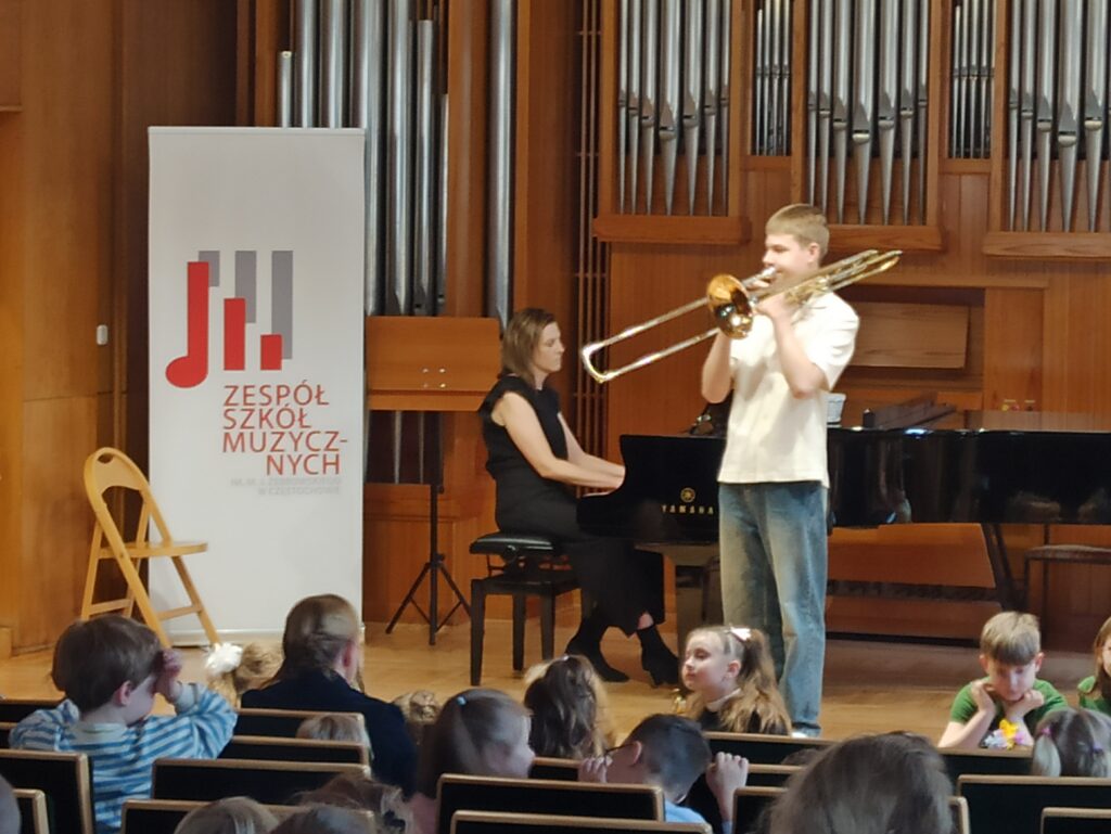 Dnia 13 marca 2026r. grupa Wiewiórek odbyła wycieczkę pieszą do Zespołu Szkół Muzycznych im. M. J. Żebrowskiego w Częstochowie, znajdującej się przy ulicy Jasnogórskiej 17. Dzieci miały okazję wysłuchać audycji muzycznej z okazji nadchodzącej wiosny, w wykonaniu uczniów tamtejszej szkoły. Ponadto przedszkolaki zobaczyły i usłyszały na żywo brzmienie wielu instrumentów muzycznych, między innymi: skrzypce, trąbka, saksofon, flet poprzeczny, fortepian, werbel, puzon, harfa, gitara i wiolonczela. Na koniec „Pani Wiosna” wraz z uczniami zaśpiewała piosenkę o nadchodzącej porze roku – Wiośnie. Cały występ nagrodziliśmy gromkimi brawami.